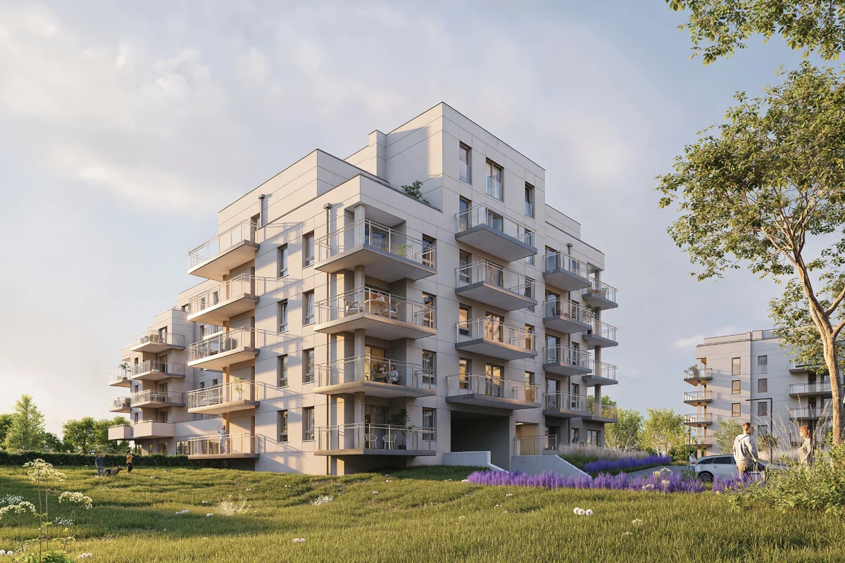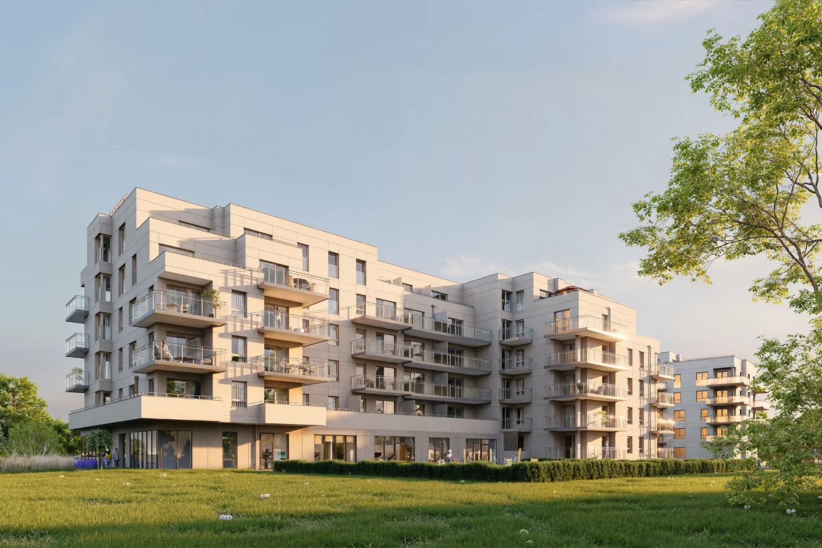 4. Trzypokojowe mieszkania • 49,44–70,76 m² — salon z aneksem kuchennym i jadalnią, sypialnia małżeńska, sypialnia dla dziecka, łazienka, WC, przedsionek. Stworzone dla młodej rodziny lub pary potrzebującej osobnego pokoju do pracy. Ogromną zaletą jest osobne WC: skraca poranne kolejki, ułatwia funkcjonowanie domownikom i gościom, podnosi komfort w czasie wizyt oraz zwiększa higienę, bo toaleta może być niezależna od strefy kąpielowej.