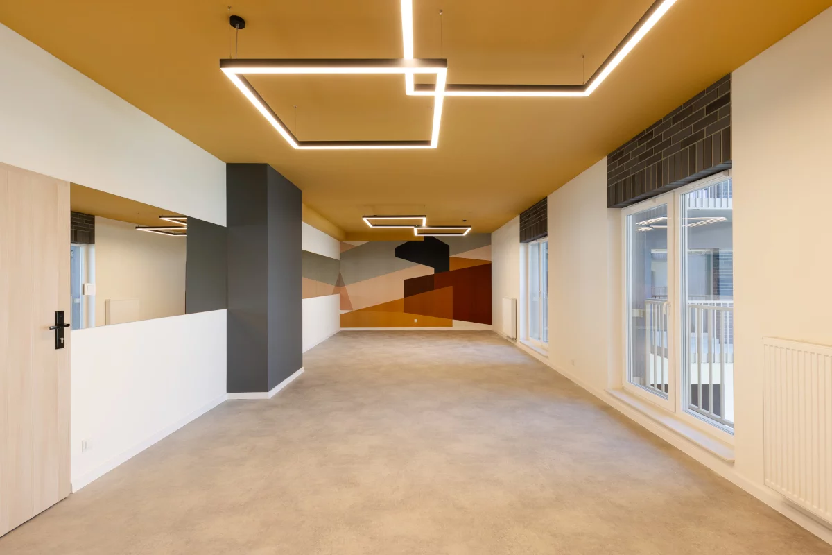 4. salon z jadalnią, WC, balkon. Jednopokojowe mieszkania 35,00–42,40 m² – opcja dla singli pracujących hybrydowo i osób inwestujących w najem krótko- lub długoterminowy. Przestronny pokój dzienny zapewnia swobodę aranżacji, WC ułatwia komfort codzienności, a balkon sprzyja chwili oddechu po pracy.