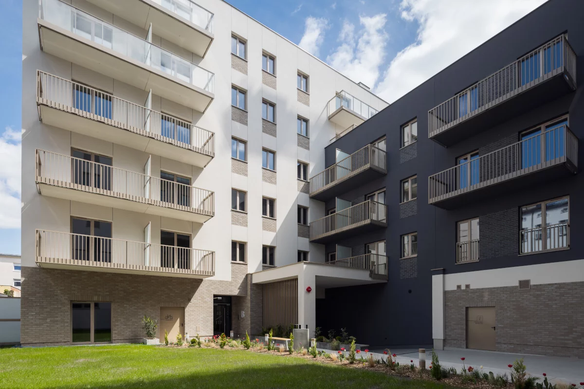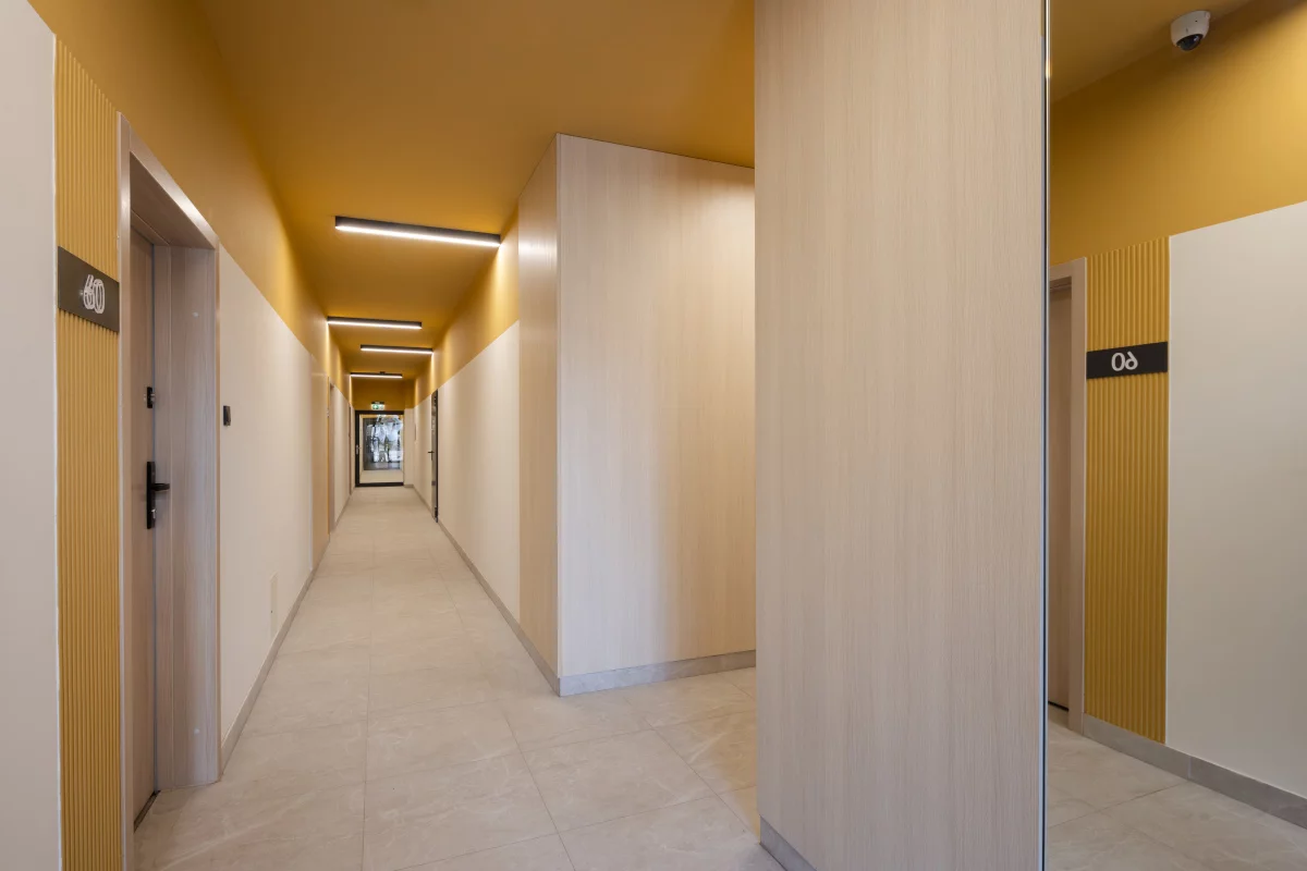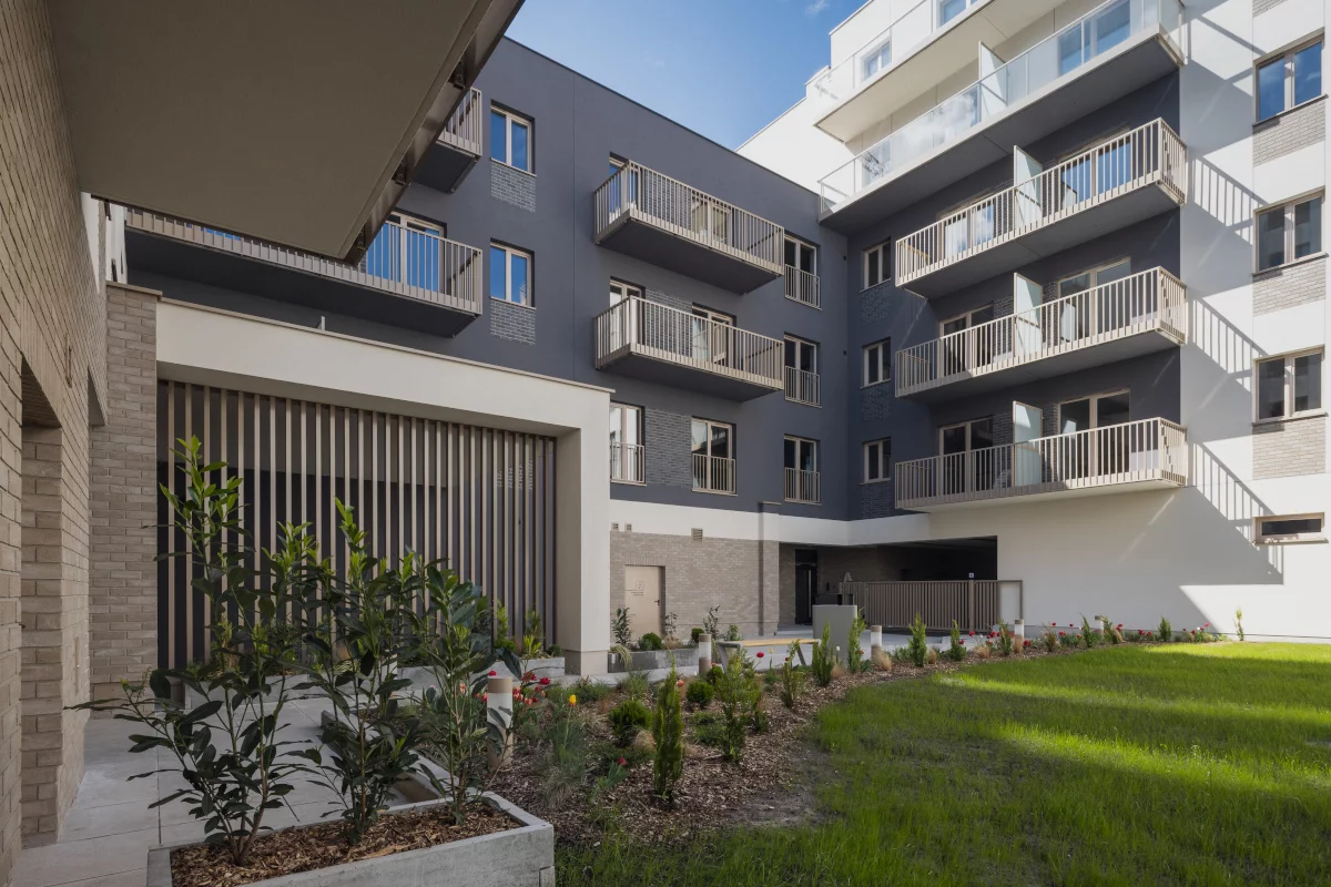 2. salon z jadalnią, sypialnia małżeńska, łazienka, ogródek. Dwupokojowe mieszkania 31,10–50,70 m² – idealne dla par, właścicieli zwierząt i osób marzących o porannym espresso w zieleni. Ogródek daje prywatną strefę relaksu, a wyraźny podział na część dzienną i nocną ułatwia codzienną organizację.
