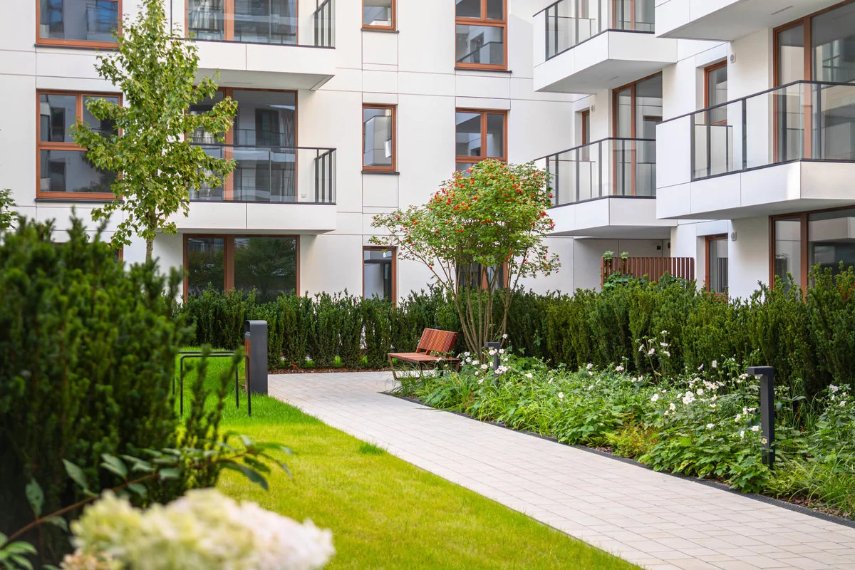 3) Jednopokojowe mieszkania, 32,02–39,55 m²: Pomieszczenia: salon z aneksem kuchennym, sypialnym i jadalnią, łazienka, przedsionek, ogródek, taras. Świetna propozycja dla miłośników zieleni, osób z pupilem lub tych, którzy chcą cieszyć się prywatną przestrzenią na świeżym powietrzu. Ogródek i taras rozszerzają funkcjonalność strefy dziennej, a elastyczny układ pozwala wydzielić kącik do pracy i komfortową część nocną.