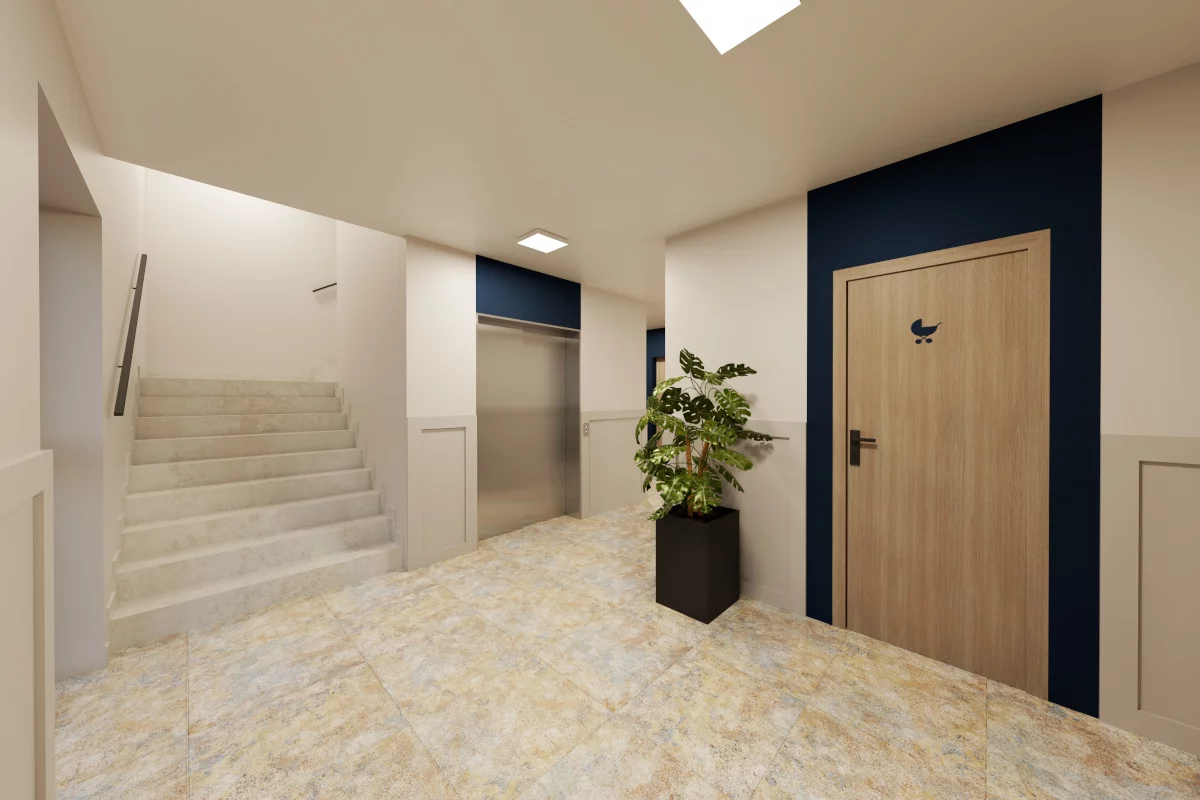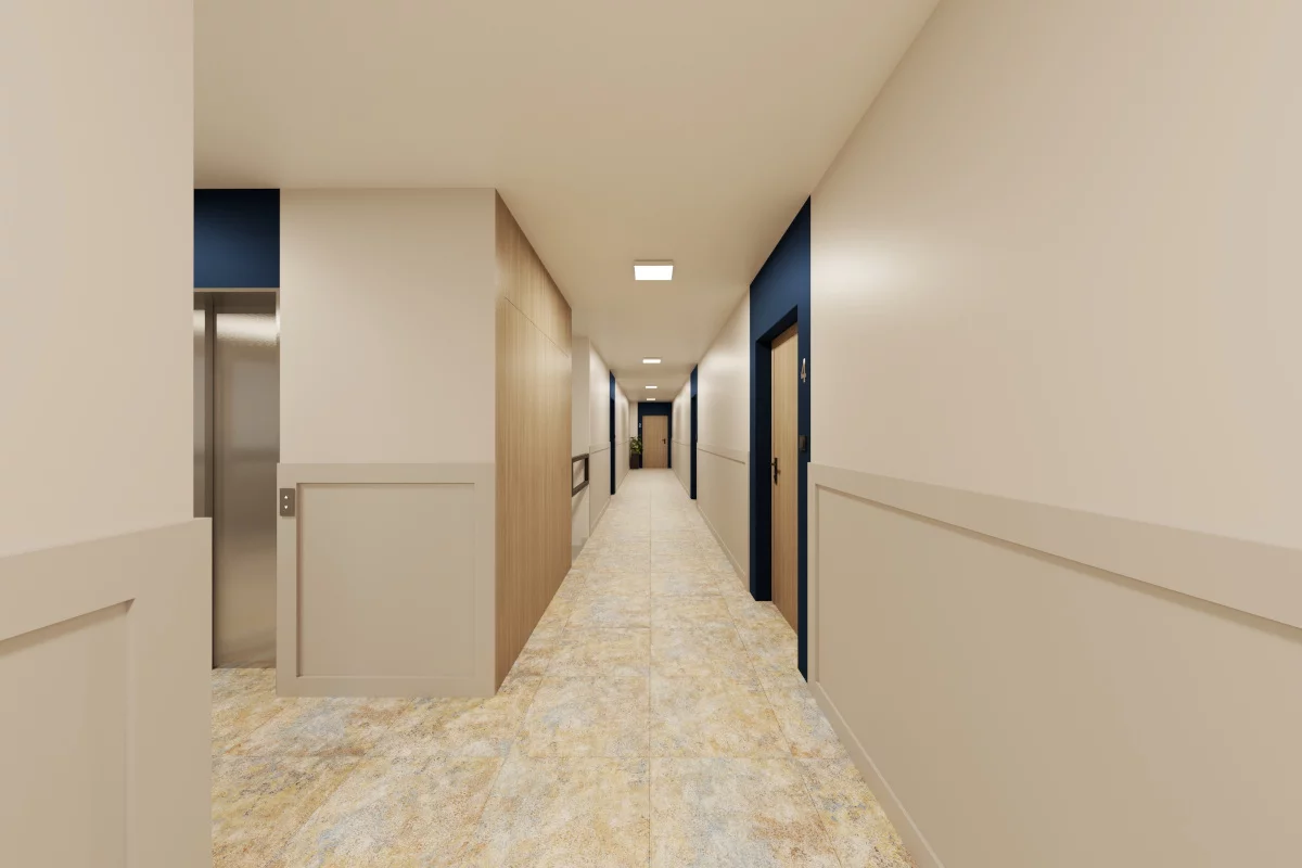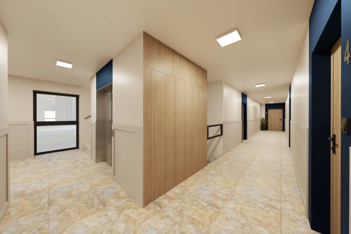 Pomieszczenia: salon z aneksem kuchennym i jadalnią, sypialnia małżeńska, dwie sypialnie dla dzieci, dwie łazienki, garderoba na odzież wierzchnią, przedsionek, balkon. Stworzone dla większych rodzin ceniących wygodę i porządek. Dwie sypialnie dla dzieci wspierają harmonijną codzienność, dwie łazienki ułatwiają logistykę domową, a garderoba na odzież wierzchnią trzyma w ryzach strefę wejścia.