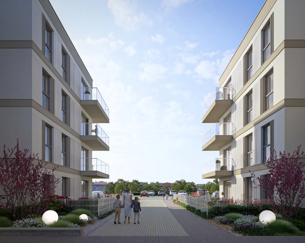 Pomieszczenia: salon z aneksem kuchennym i jadalnią, sypialnia małżeńska, sypialnia dla dziecka, łazienka, przedsionek, balkon. Dla rodzin, które potrzebują nieco większej elastyczności metrażu. Różne warianty powierzchni pozwalają dobrać układ pod styl życia, a balkon tworzy dodatkową strefę odpoczynku.