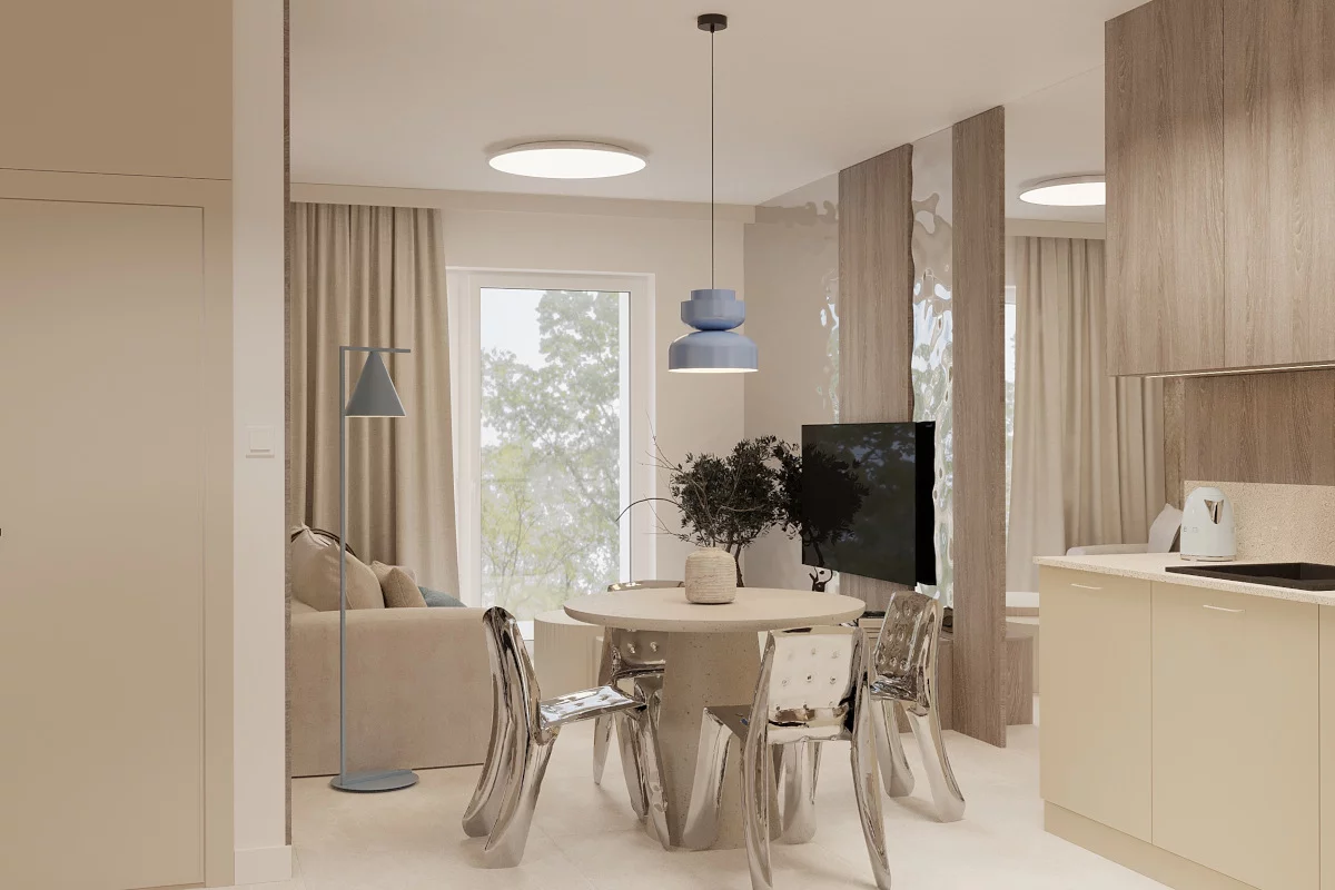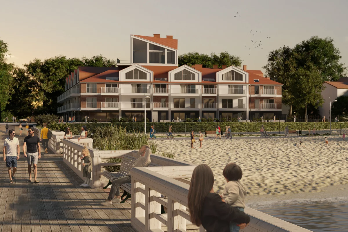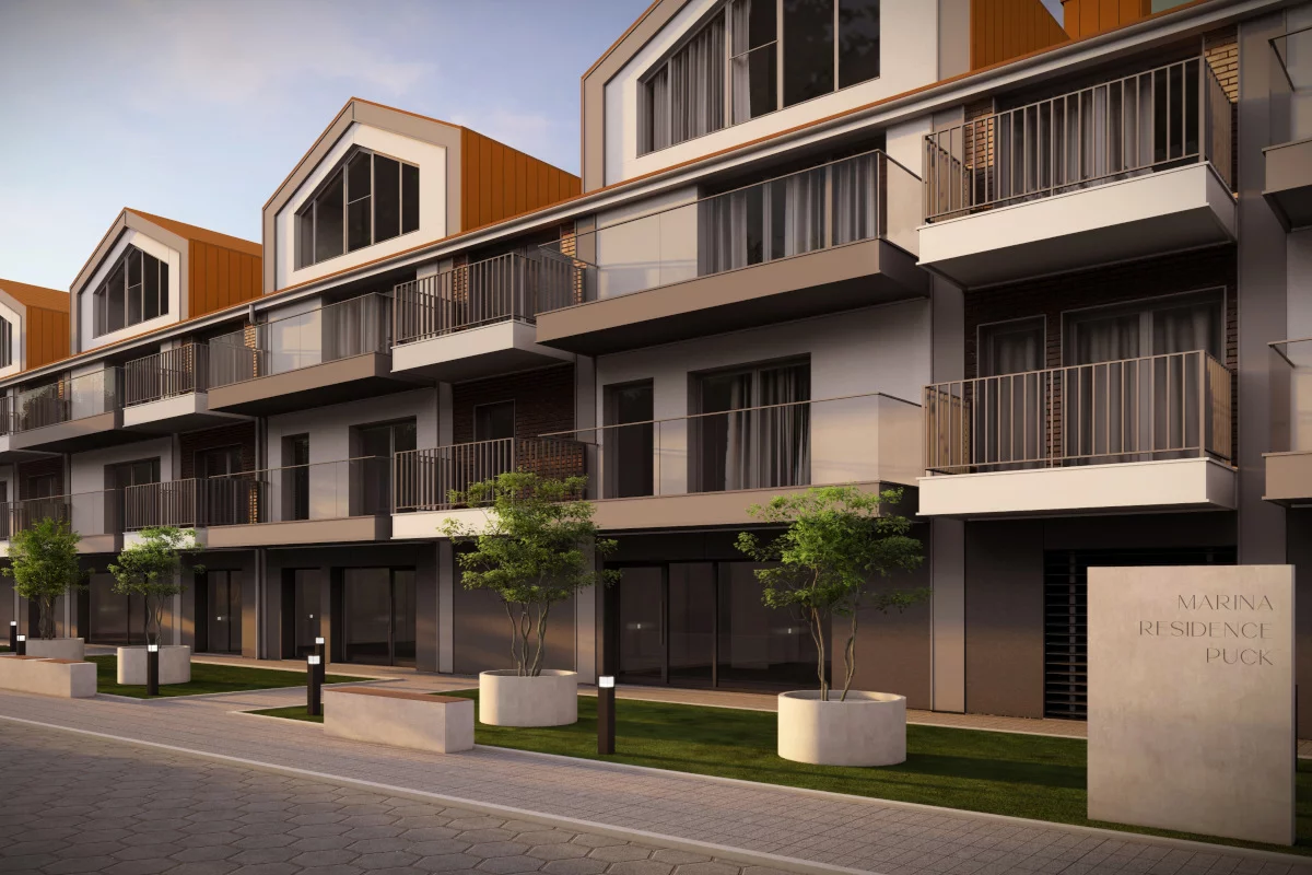 1. Pomieszczenia: salon z aneksem kuchennym i jadalnią, sypialnia małżeńska, łazienka, przedsionek. — Dwupokojowe apartamenty, 30,17–42,99 m². Idealne dla singla lub pary, a także jako wakacyjny adres nadmorski czy inwestycja pod wynajem. Atutem jest klarowny podział na strefę dzienną z jadalnią i wygodną sypialnię, funkcjonalny przedsionek oraz ergonomiczny metraż, który łatwo zaaranżować pod własne potrzeby.