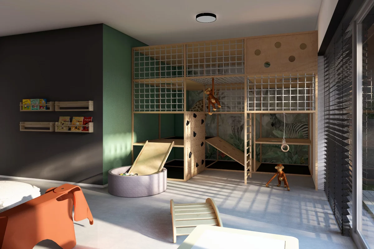 8. Pomieszczenia: salon z aneksem kuchennym i jadalnią, sypialnia małżeńska, sypialnia dla dziecka, łazienka, przedsionek, ogródek. — Trzypokojowy apartament, 48,25 m². Dla młodej rodziny ceniącej praktyczność. Osobny pokój dziecka wspiera domową rutynę i porządek, a ogródek staje się bezpiecznym miejscem zabawy i weekendowego relaksu.