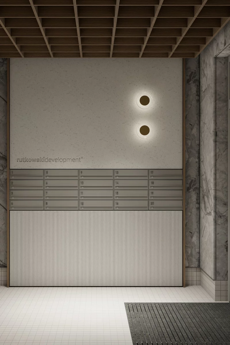 5) Salon z aneksem kuchennym i jadalnią, sypialnia małżeńska, sypialnia dla dziecka, sypialnia dla dziecka, łazienka, garderoba na odzież wierzchnią, WC, przedsionek, balkon, balkon. Czteropokojowy apartament – 84,83 m² to komfortowa propozycja dla rodzin. Zaletą jest ilość sypialni dla dzieci, dzięki czemu każdy młody domownik ma własny azyl. Dwa balkony dają możliwość wydzielenia dwóch różnych stref wypoczynku na zewnątrz i elastycznego użytkowania. Osobne WC przyspiesza poranki i rozładowuje kolejki, a garderoba na odzież wierzchnią skutecznie porządkuje strefę wejścia, ograniczając bałagan i ułatwiając przechowywanie.