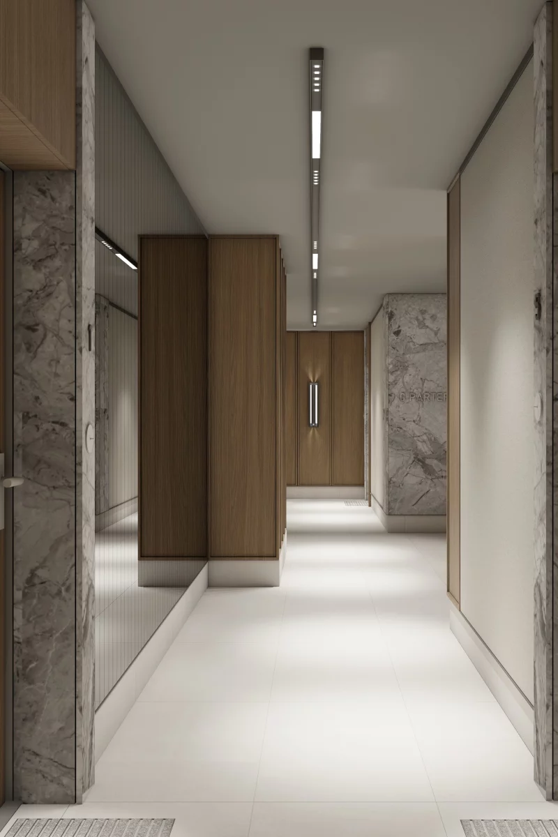4) Salon z aneksem kuchennym i jadalnią, sypialnia małżeńska, sypialnia dla dziecka, sypialnia dla dziecka, łazienka, przedsionek, balkon. Pięciopokojowy apartament – 74,90 m² są stworzone dla rodzin z dwojgiem dzieci lub dla tych, którzy potrzebują dodatkowej pracowni. Zaletą jest ilość sypialni dla dzieci: każde z nich zyskuje własną, spokojną przestrzeń do nauki i odpoczynku, co ułatwia codzienną rutynę, a jednocześnie ogranicza konflikty o miejsce i porządek. Balkon dopełnia funkcjonalność, dodając strefę wytchnienia na świeżym powietrzu.