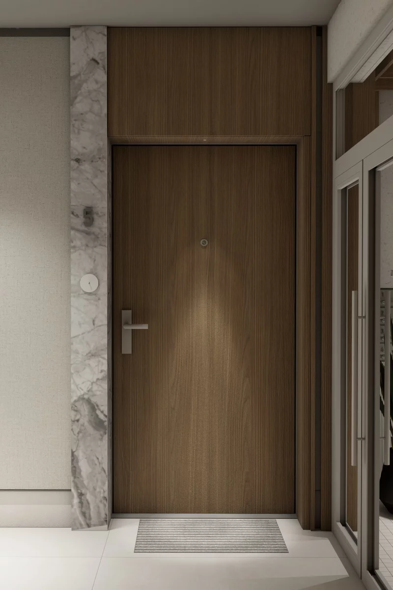 7) Salon z aneksem kuchennym i jadalnią, sypialnia dla gości, sypialnia małżeńska, sypialnia dla dziecka, łazienka, garderoba na odzież wierzchnią, przedsionek, balkon. Czteropokojowy apartament – 87,94 m² to wybór dla rodzin, które cenią wygodę przyjmowania gości i dobrą organizację. Zaletą jest osobna sypialnia dla gości – komfortowa i dyskretna, oraz garderoba na odzież wierzchnią, która porządkuje strefę wejściową i ułatwia codzienne funkcjonowanie. Przemyślany układ ułatwia jednoczesne życie rodzinne i pracę z domu.
