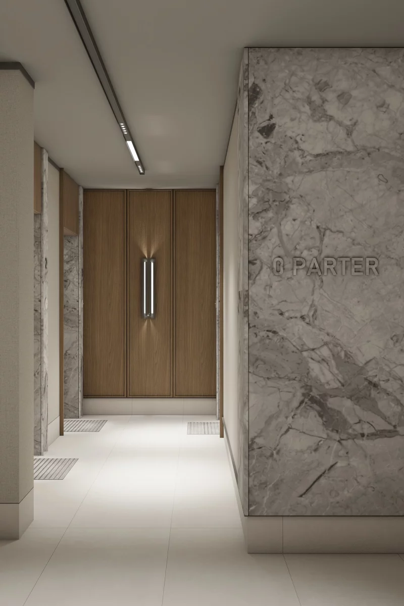6) Salon z aneksem kuchennym i jadalnią, sypialnia dla gości, sypialnia dla dziecka, sypialnia małżeńska, łazienka, garderoba, WC, przedsionek, balkon. Czteropokojowy apartament – 84,84 m² docenią rodziny i osoby, które często przyjmują bliskich. Zaletą jest osobna sypialnia dla gości – zapewnia wygodę i intymność odwiedzającym, a na co dzień może pełnić funkcję gabinetu. Osobne WC zwiększa komfort domowników, szczególnie w godzinach szczytu, a osobna garderoba pomaga utrzymać porządek i szybko odnaleźć potrzebne rzeczy.
