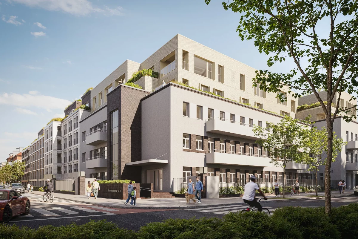 17. salon z aneksem kuchennym i jadalnią, sypialnia małżeńska, łazienka, przedsionek, balkon. Dwupokojowe mieszkania, 41,10–53,17 m². Dla pary lub rodzica z dzieckiem; szeroki zakres metraży ułatwia dopasowanie, balkon stanowi praktyczne uzupełnienie strefy dziennej.