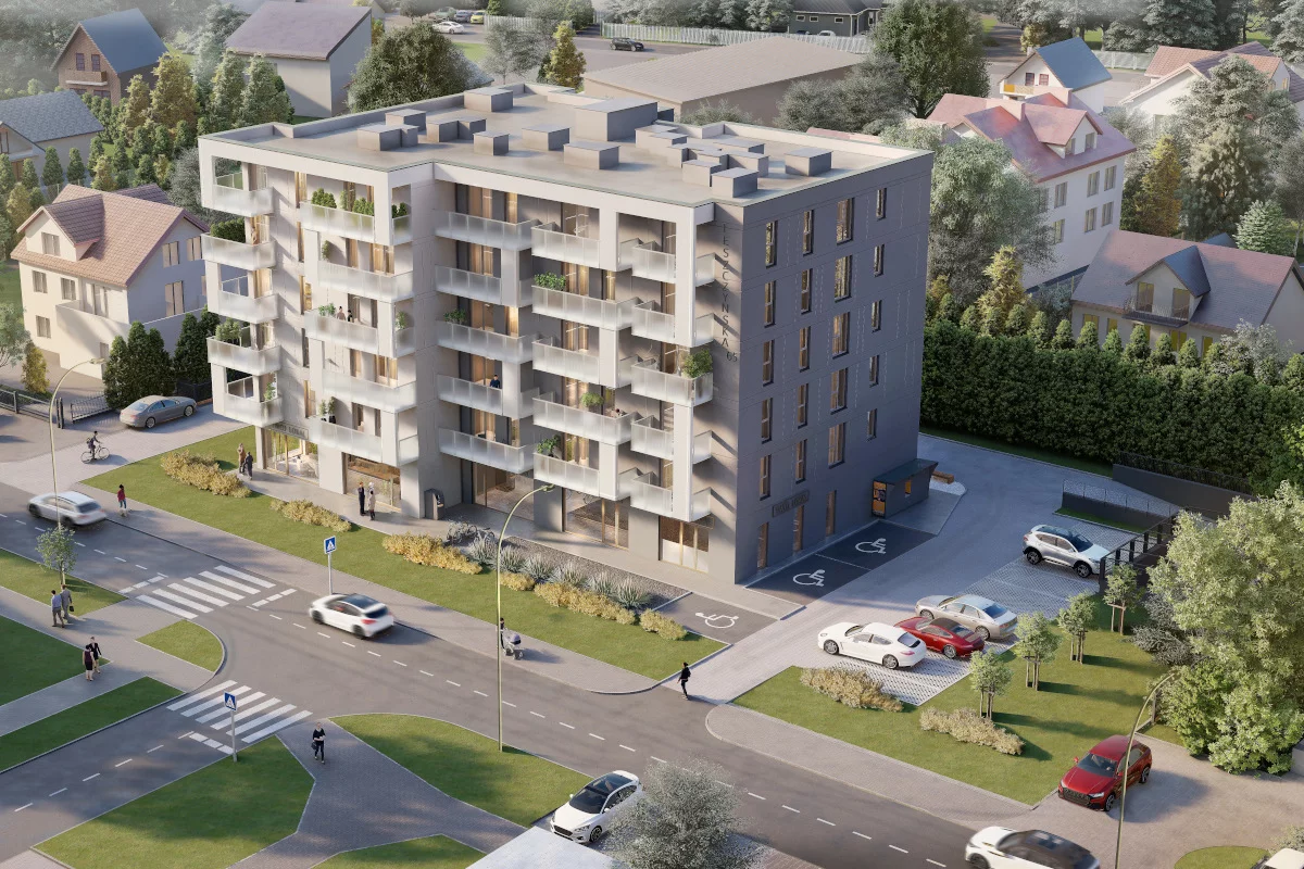 4. Salon z aneksem kuchennym i jadalnią, sypialnia małżeńska, łazienka, przedsionek, balkon. To dwupokojowe mieszkania 39,39–44,17 m², które oferują nieco więcej przestrzeni na wygodne życie we dwoje lub dla singla oczekującego większego komfortu. Swobodny metraż sprzyja aranżacji strefy dziennej z kanapą i jadalnią, a osobna sypialnia zapewnia spokojną, prywatną część nocną. Balkon umożliwia codzienny odpoczynek na świeżym powietrzu.