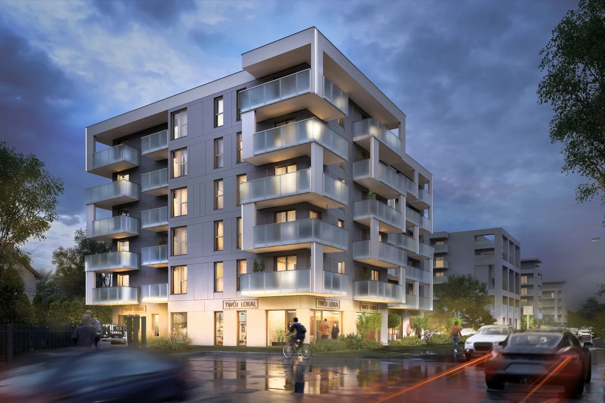3. Salon z aneksem kuchennym i jadalnią, sypialnia małżeńska, łazienka, przedsionek, balkon. To dwupokojowe mieszkania 35,10–44,17 m² dla par ceniących prywatność i wygodę osobnej sypialni. Przemyślany układ pozwala komfortowo zaaranżować część dzienną z miejscem na stół, a w sypialni zaplanować pojemne przechowywanie. Balkon stanowi naturalne przedłużenie strefy wypoczynku i sprzyja chwili wytchnienia.