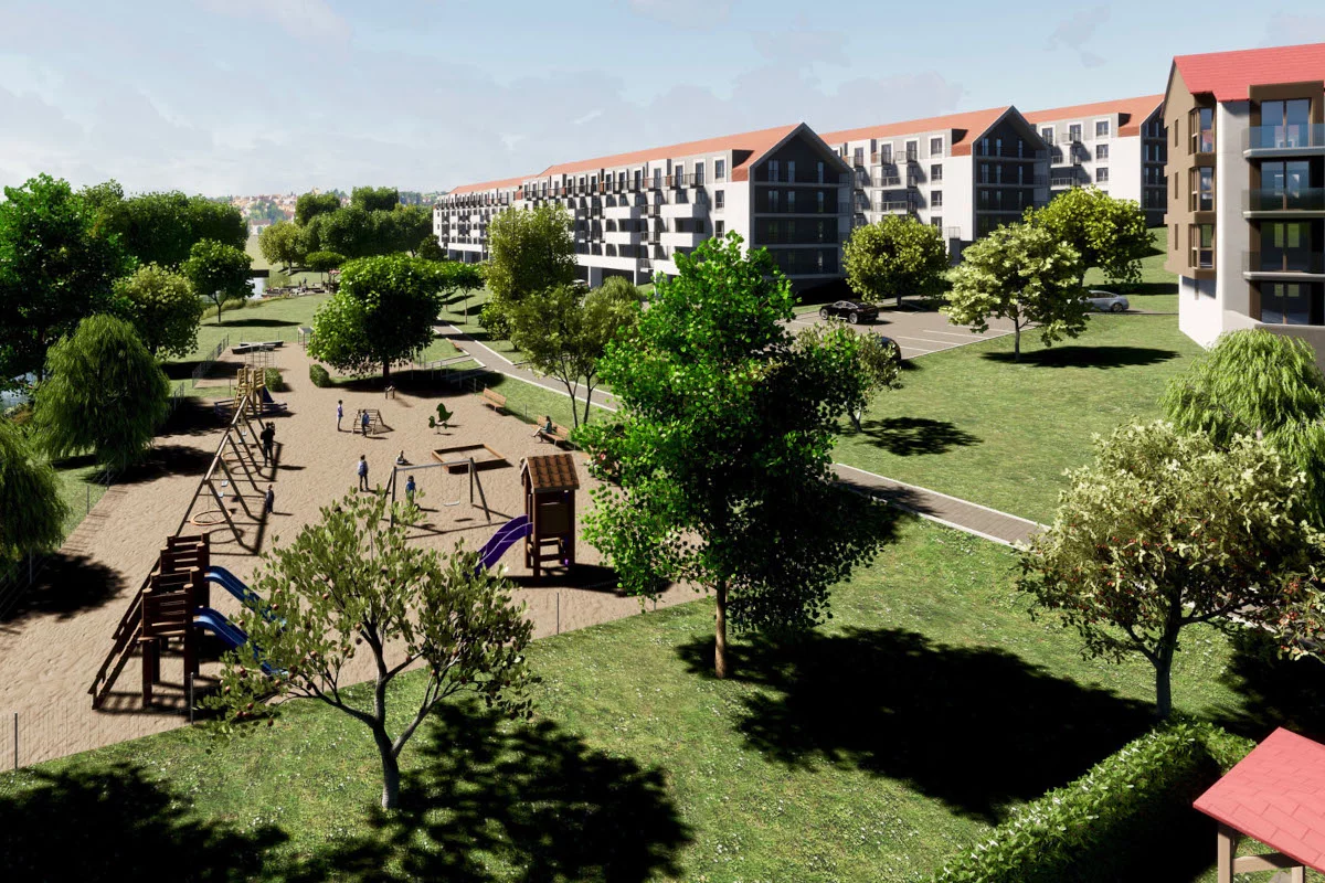 4. Dwupokojowe mieszkania o powierzchni od 41,86 m² do 45,82 m² W skład mieszkania wchodzą: salon z aneksem kuchennym i jadalnią, sypialnia małżeńska, łazienka, przedsionek. Świetne dla pary, młodych rodziców lub osób pracujących z domu, które potrzebują prywatnej sypialni i wygodnej strefy dziennej. Zaletą jest klarowny podział na część prywatną i dzienną, komfortowa jadalnia do wspólnych posiłków oraz przedsionek jako praktyczna strefa wejściowa.