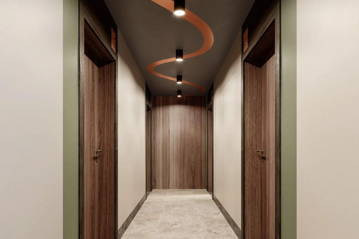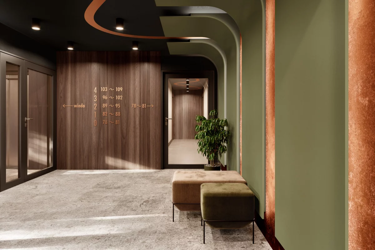 2. Salon z aneksem kuchennym i jadalnią, sypialnia małżeńska, sypialnia dla dziecka, łazienka, WC, przedsionek, korytarz wewnętrzny — taką aranżację mają trzypokojowe mieszkania o powierzchni od 56,10 m² do 58,47 m². To świetny wybór dla rodziny 2+1 lub 2+2, która potrzebuje dwóch niezależnych sypialni i komfortowej części wspólnej. Osobne WC to realna przewaga na co dzień: eliminuje poranne „korki”, zwiększa prywatność gości, pozwala rozdzielić funkcje higieniczne i sanitarne, a tym samym ułatwia utrzymanie czystości i porządku. Korytarz wewnętrzny porządkuje komunikację i daje miejsce na szafy, a przedsionek pomaga okiełznać codzienną logistykę wyjść do szkoły i pracy.