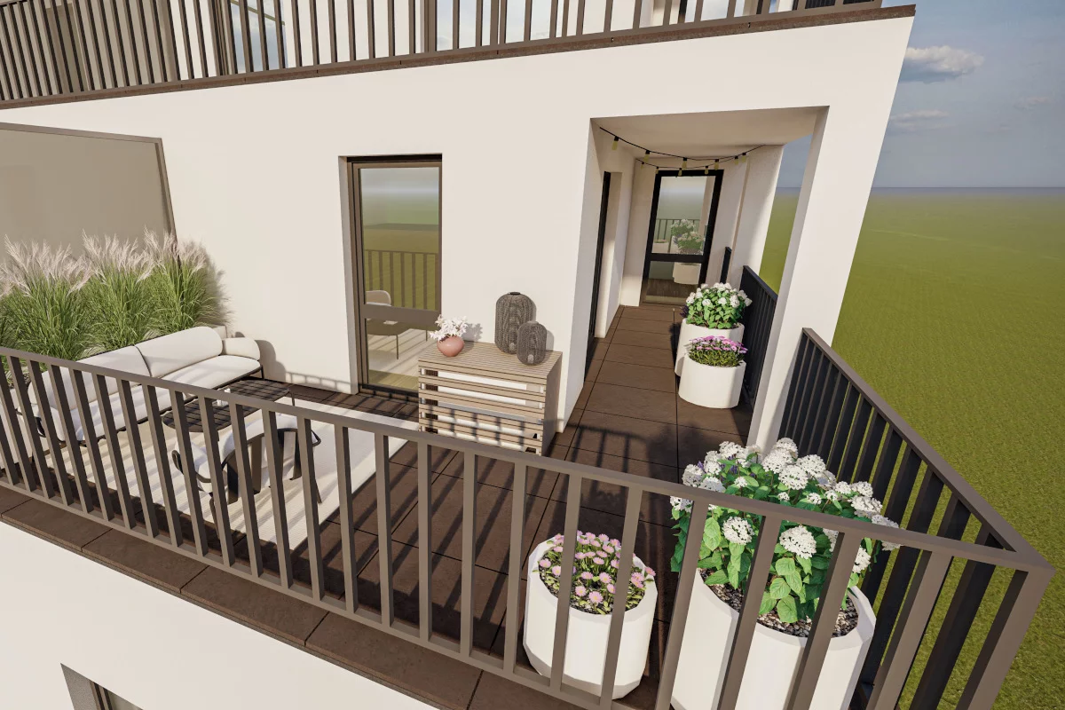 4. Salon z aneksem kuchennym i jadalnią, sypialnia małżeńska, łazienka, przedsionek. (Dobry wybór dla pary lub singla, który lubi gotować i przyjmować gości.) Dwupokojowe mieszkania o powierzchni od 42,90 m² do 43,28 m² tworzą czytelny układ dzienny z miejscem na stół oraz wygodną sypialnię. Przedsionek porządkuje strefę wejściową i ogranicza przenoszenie zabrudzeń, a kompaktowy metraż pozostaje łatwy w utrzymaniu.