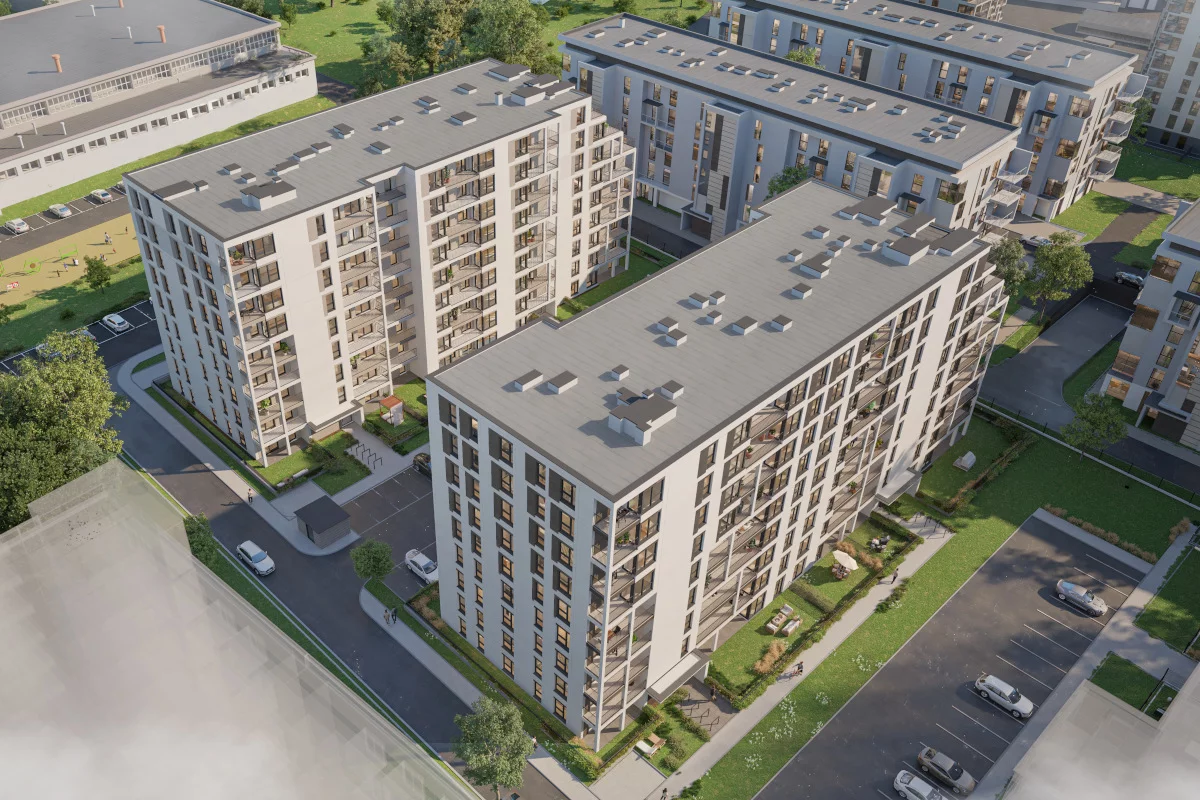 Lokalizacja inwestycji doskonale odpowiada idei miasta 15-minutowego – mieszkańcy mogą w krótkim czasie dotrzeć pieszo lub rowerem do sklepów, placówek edukacyjnych, terenów rekreacyjnych czy komunikacji miejskiej. Brak lokali usługowych w budynku zapewnia spokojniejszy parter i większą prywatność, przy jednoczesnym korzystaniu z rozbudowanej infrastruktury w otoczeniu osiedla.