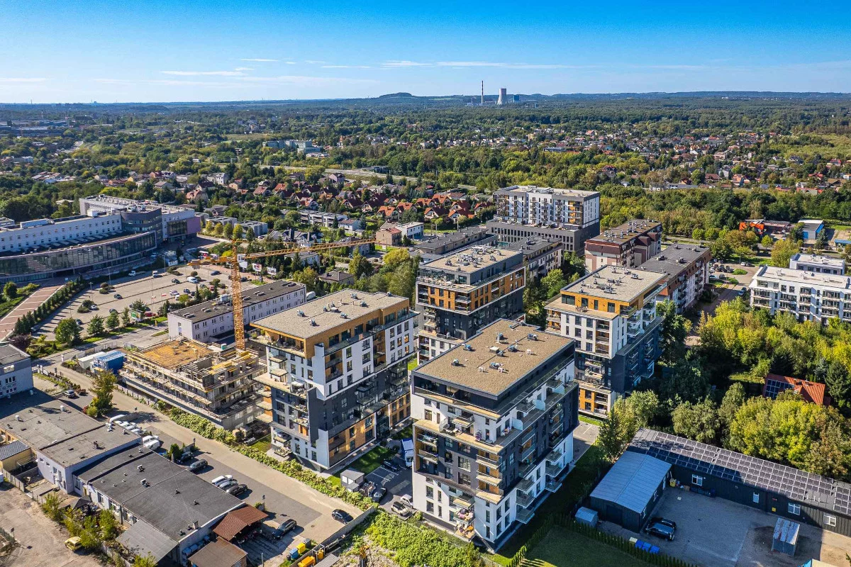 6. Czteropokojowe 70,69–84,53 m². Salon z aneksem kuchennym i jadalnią, sypialnia małżeńska, sypialnia dla dziecka, sypialnia dla dziecka, łazienka, przedsionek, dwa balkony. Dla rodzin 2+2 lub tych, którzy chcą łączyć sypialnię dziecięcą z pokojem do nauki lub hobby. Zaletą jest liczba sypialni dla dzieci – każde dziecko zyskuje własne miejsce do nauki i odpoczynku. Dwa balkony podnoszą komfort: łatwiej zorganizować strefę relaksu i np. osobną przestrzeń do uprawy roślin czy suszenia.