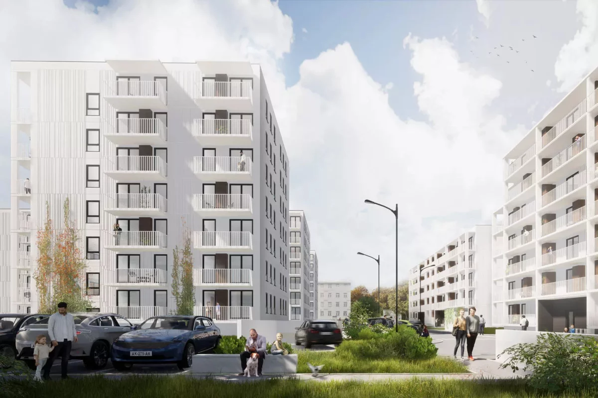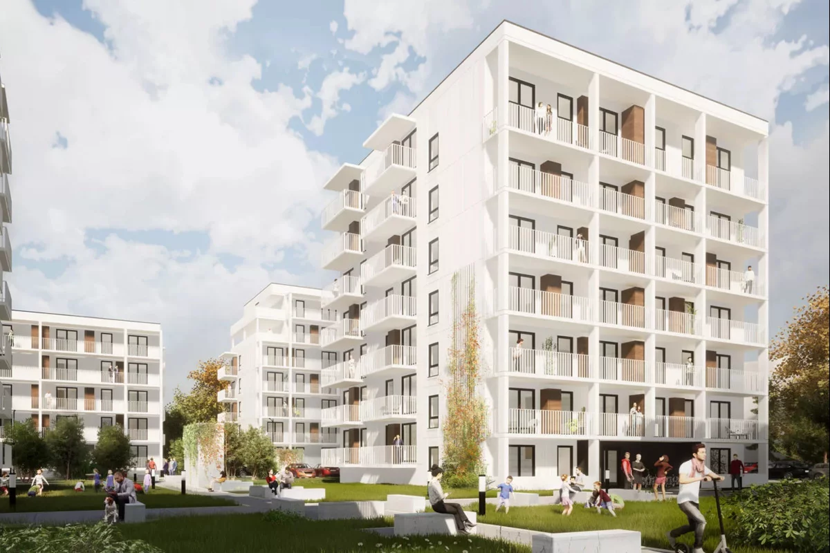 5. salon z aneksem kuchennym i jadalnią, sypialnia małżeńska, sypialnia dla dziecka, sypialnia dla dziecka, łazienka, przedsionek. Trzypokojowe mieszkania 66,77–79,62 m² stworzone dla rodzin 2+2 lub takich, które potrzebują dwóch pokoi dziecięcych. Zaletą jest ilość sypialni dla dzieci: każde dziecko zyskuje własną przestrzeń do nauki, odpoczynku i przechowywania rzeczy, co ogranicza konflikty i ułatwia codzienną organizację.