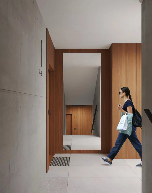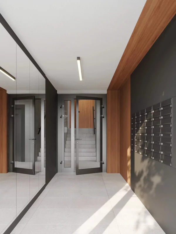 2. salon z aneksem kuchennym i jadalnią, sypialnia małżeńska, sypialnia dla dziecka, łazienka, przedsionek. Dwupokojowe mieszkania 54,69–63,82 m² sprawdzą się dla młodej rodziny lub pary planującej powiększenie rodziny. Dwie sypialnie pozwalają wygospodarować osobną przestrzeń dla dziecka albo gabinet, a przedsionek daje miejsce na pojemne szafy.