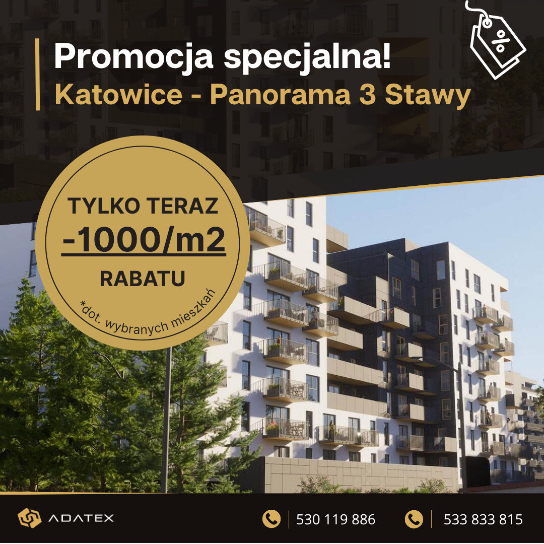 Obecnie w sprzedaży dostępnych jest 28 typów mieszkań w inwestycji Panorama 3 Stawy w Katowicach na Osiedlu Paderewskiego-Muchowcu.