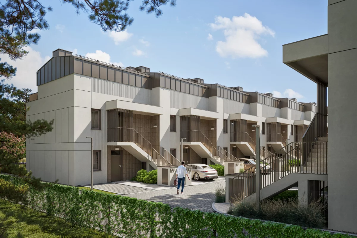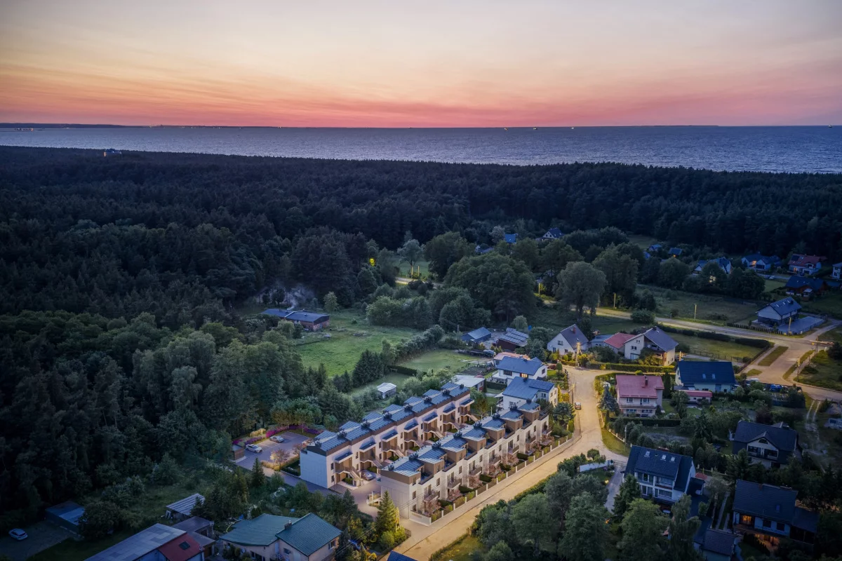 1) Pomieszczenia: salon z jadalnią, sypialnia małżeńska, kuchnia z jadalnią, łazienka, schowek, korytarz wewnętrzny, przedsionek, ogródek. Dwupokojowe mieszkania 49,72 m² to idealna propozycja dla pary lub singla, który chce połączyć wygodę życia w bliskości plaż z prywatnym zakątkiem na świeżym powietrzu. Atutem jest osobna kuchnia – pozwala gotować bez wprowadzania kuchennego gwaru do strefy wypoczynku, trzymać w ryzach porządek i wygodnie organizować posiłki w wydzielonej jadalni. Równie praktyczny jest osobny schowek: zmieści akcesoria plażowe, sprzęt sportowy, walizki i zapasy, dzięki czemu w mieszkaniu panuje ład, a rzeczy sezonowe są pod ręką. Ogródek dopełnia całość jako miejsce na poranną kawę, zioła czy leżaki po dniu nad wodą.