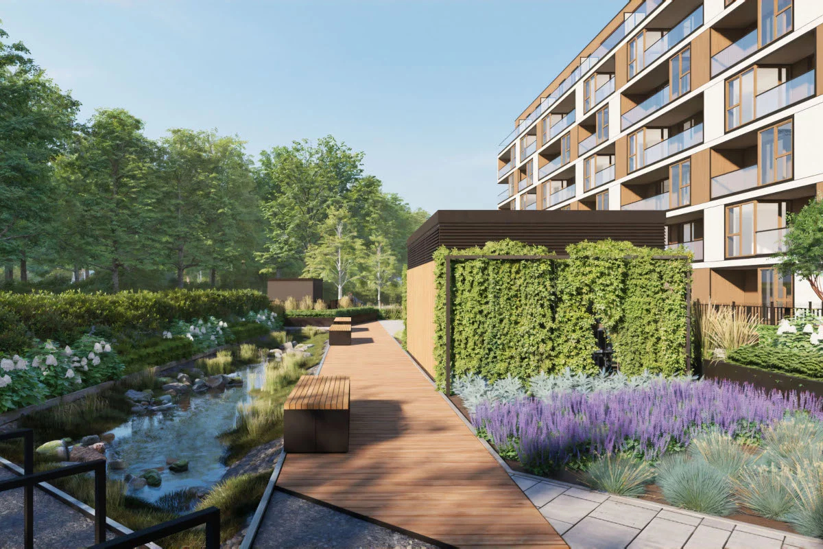 7. Pomieszczenia: salon z aneksem kuchennym i jadalnią, sypialnia małżeńska, łazienka, przedsionek, ogródek, taras. Dwupokojowe mieszkania • 43,51–45,22 m² – idealne dla par ceniących kontakt z naturą i prywatność. Ogródek i taras tworzą kameralną strefę wypoczynku, a metraż zapewnia wygodną aranżację z pojemnymi szafami. To także atrakcyjny produkt inwestycyjny.
