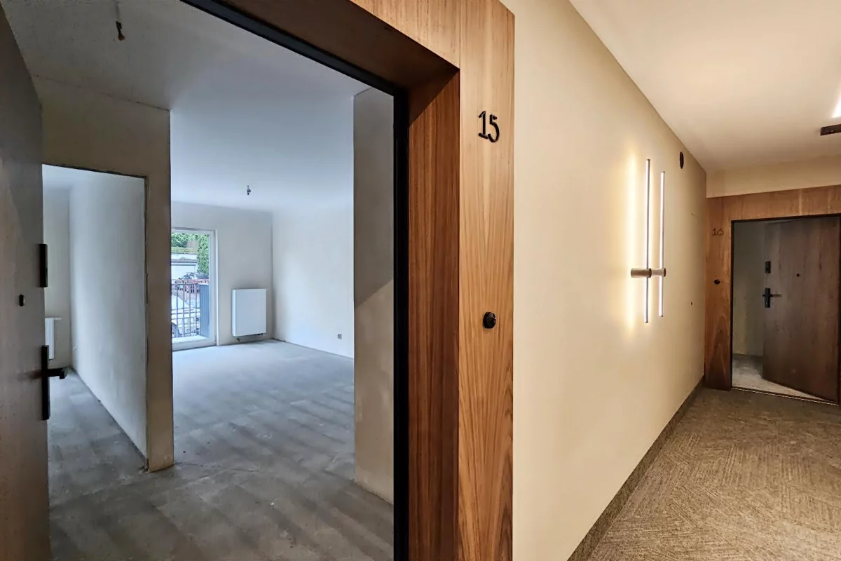 1. Pomieszczenia: salon z aneksem kuchennym i jadalnią, sypialnia małżeńska, łazienka, korytarz wejściowy, ogródek. Dwupokojowe apartamenty wakacyjne, 39,10–49,89 m². Idealne dla singla lub pary, która ceni prywatność i kontakt z zielenią w Gdyni-Grabówku. Atutem jest własny ogródek – przestrzeń na poranną kawę, miejsce zabaw dla dziecka lub kącik dla pupila, a także łatwa aranżacja strefy dziennej z wygodnym aneksem i jadalnią. Kompaktowy metraż sprzyja niskim kosztom utrzymania i prostemu zarządzaniu najmem wakacyjnym.