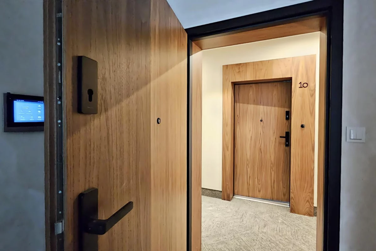 4. Pomieszczenia: salon z aneksem kuchennym i jadalnią, sypialnia małżeńska, sypialnia dla dziecka, łazienka, korytarz wejściowy, ogródek. Trzypokojowe apartamenty wakacyjne, 61,71–67,95 m². Idealne dla rodzin z dziećmi, posiadaczy zwierząt lub osób ceniących prywatną zieleń. Prywatny ogródek daje dzieciom bezpieczną strefę zabawy, a dorosłym – miejsce na relaks i posiłki na zewnątrz. Dwie pełnowartościowe sypialnie i wygodna część dzienna zwiększają komfort pobytu, a korytarz porządkuje wejście i codzienną logistykę.