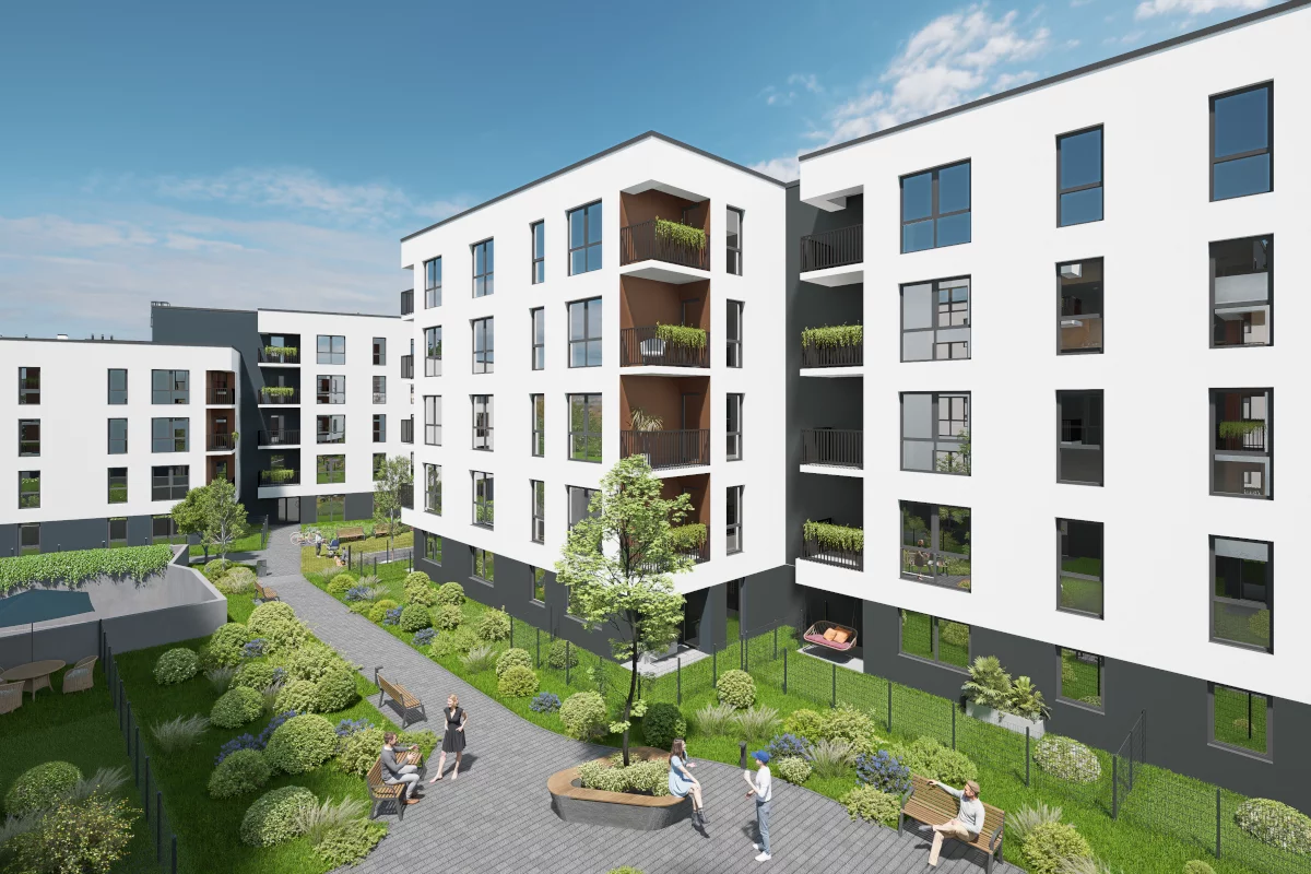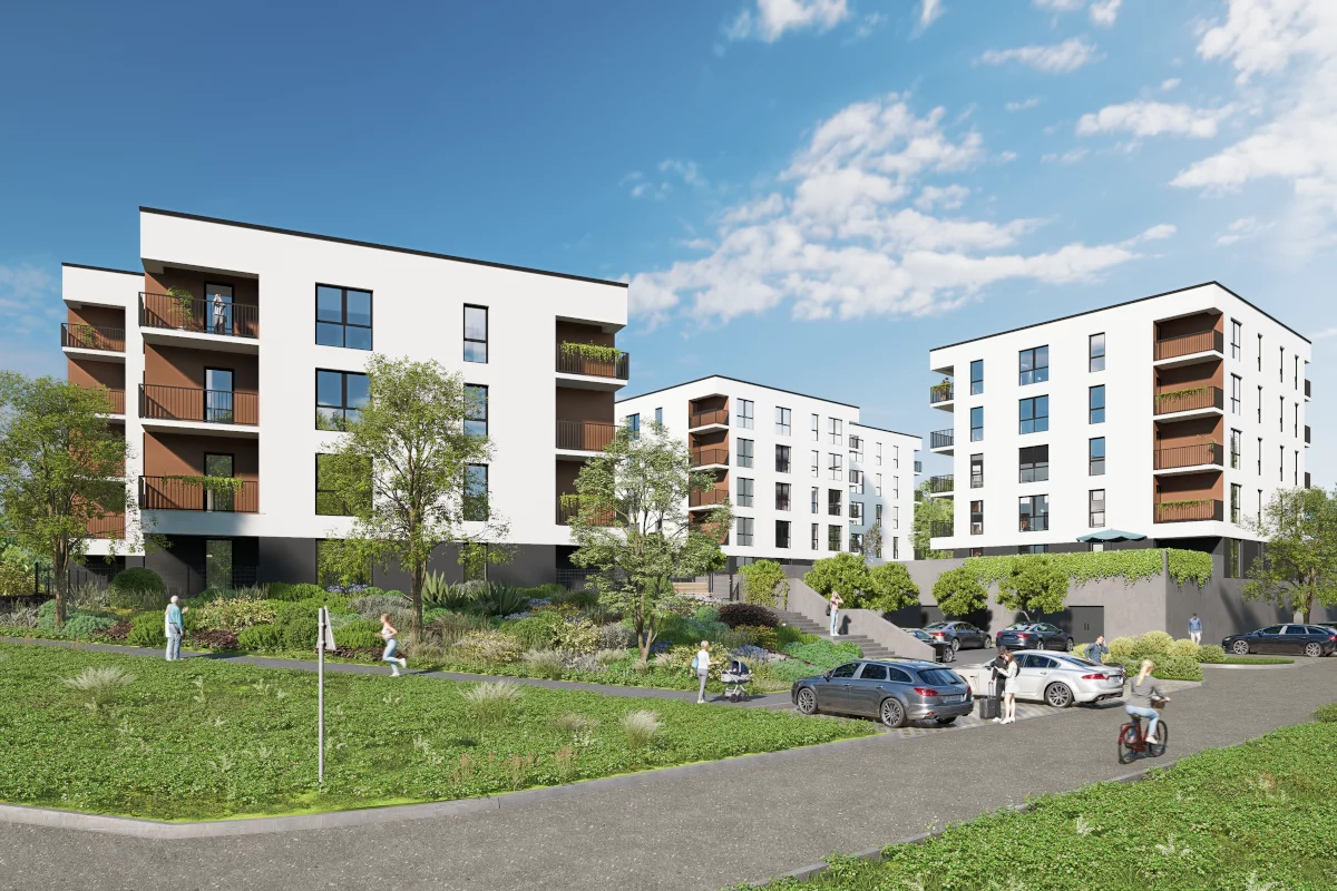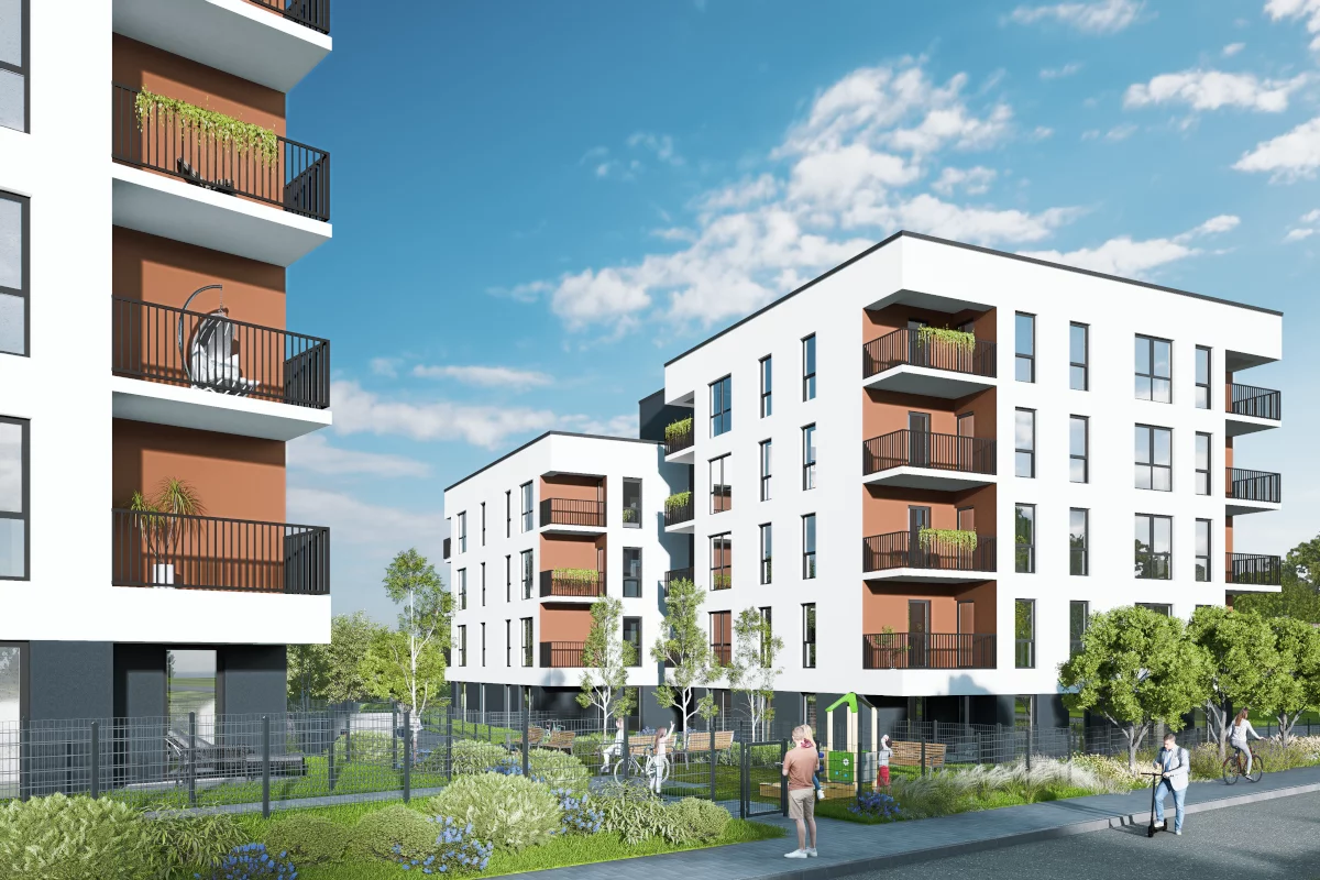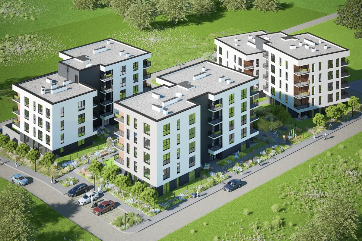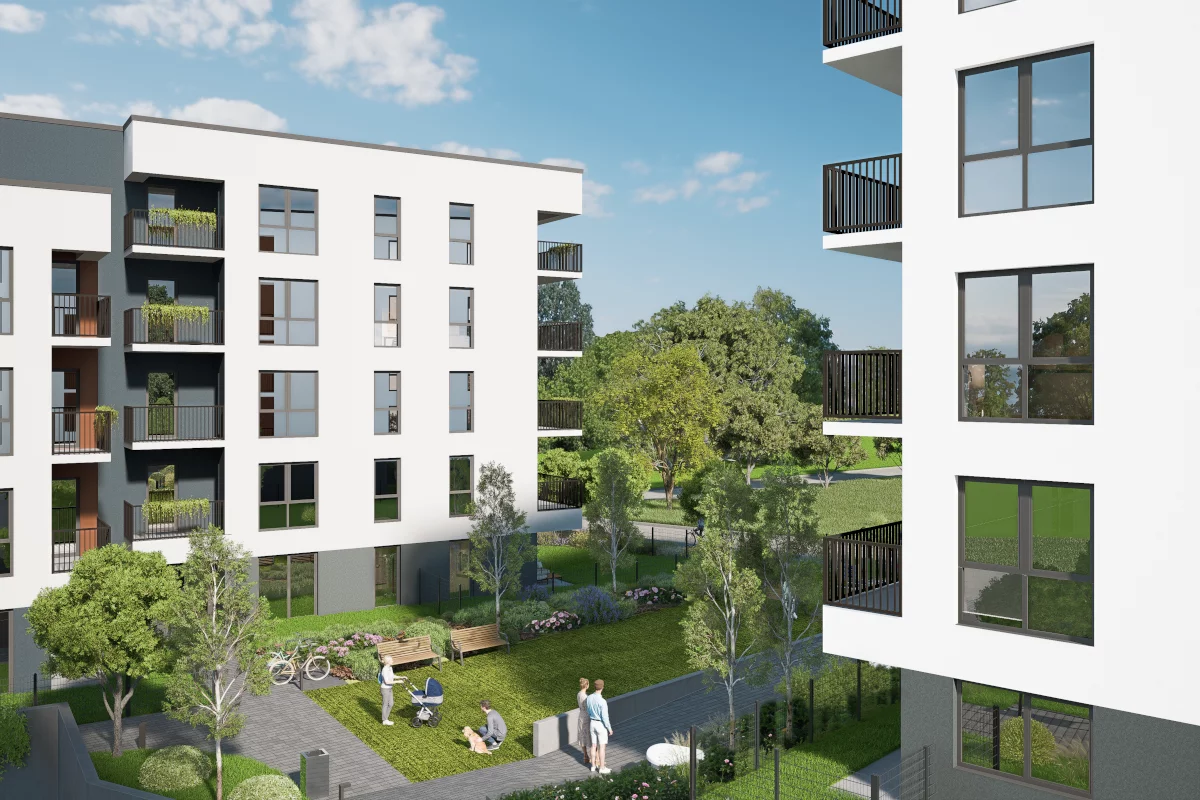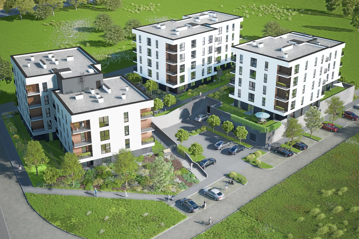 4) Dwupokojowe mieszkania – od 36,72 m² do 46,07 m². Pomieszczenia: salon z aneksem kuchennym i jadalnią, sypialnia małżeńska, łazienka, balkon. Zakres metraży pozwala dopasować układ do potrzeb – od zgrabnej przestrzeni dla singla po wygodę dla pary z miejscem na biurko; balkon sprzyja relaksowi na świeżym powietrzu.