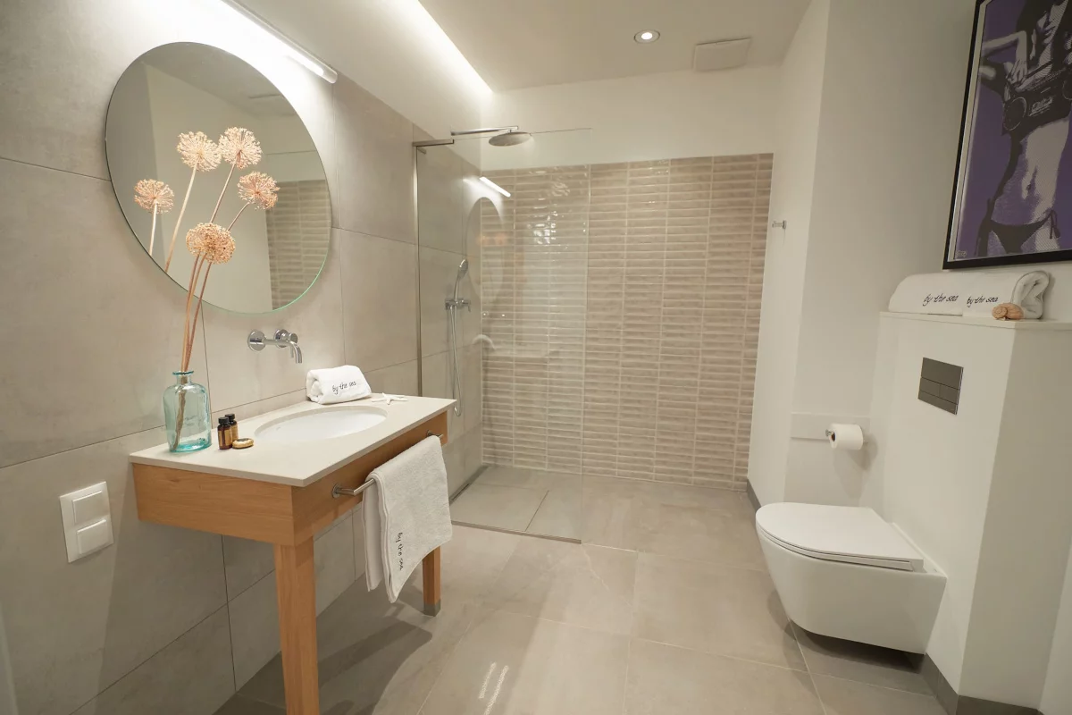 4) łazienka, łazienka, pokój, pokój, korytarz wejściowy, korytarz wejściowy. Dwupokojowe mieszkanie 51,69 m² to propozycja dla par oraz inwestorów, którzy stawiają na wygodę i reprezentacyjny standard. Zaletą jest ilość łazienek – dwie łazienki zwiększają komfort współdzielenia przestrzeni i podnoszą wartość użytkową oraz rynkową. Rozbudowana strefa wejściowa sprzyja przechowywaniu (szafy, garderoba, miejsce na wózek/rower składany) i uporządkowanemu funkcjonowaniu na co dzień.