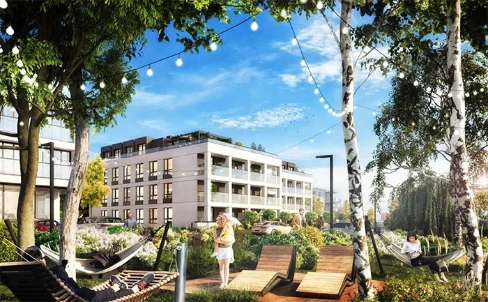 5. Salon z aneksem kuchennym i jadalnią, sypialnia małżeńska, sypialnia dla dziecka, łazienka, korytarz wejściowy, ogródek, taras. Trzypokojowe mieszkania, od 53,68 m² do 63,20 m² – świetne dla rodzin z małym dzieckiem lub par z psem. Ogródek i taras ułatwiają aktywny tryb życia i wspólne chwile na świeżym powietrzu, a dwa pokoje prywatne zapewniają komfort wieczorem i w weekendy.