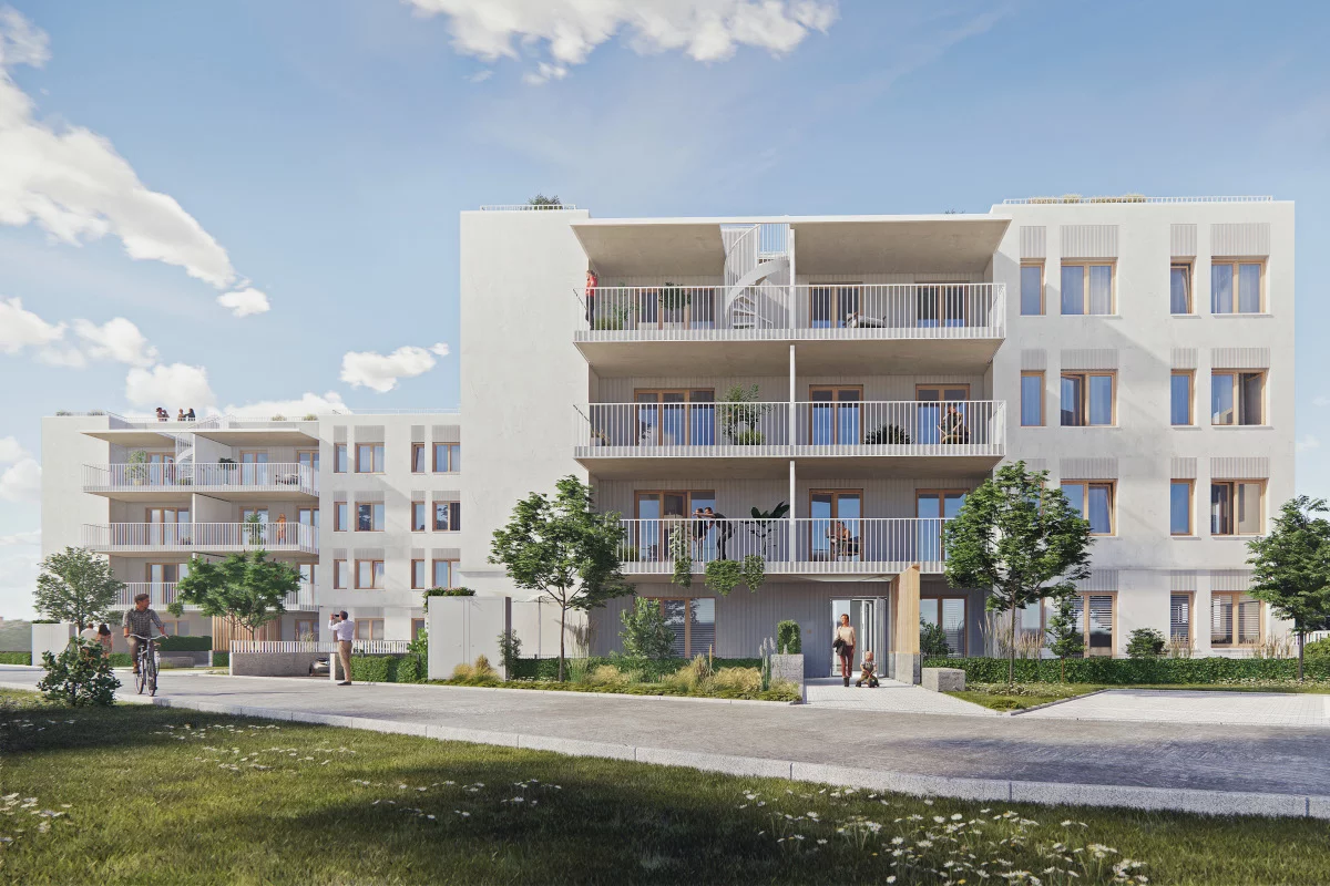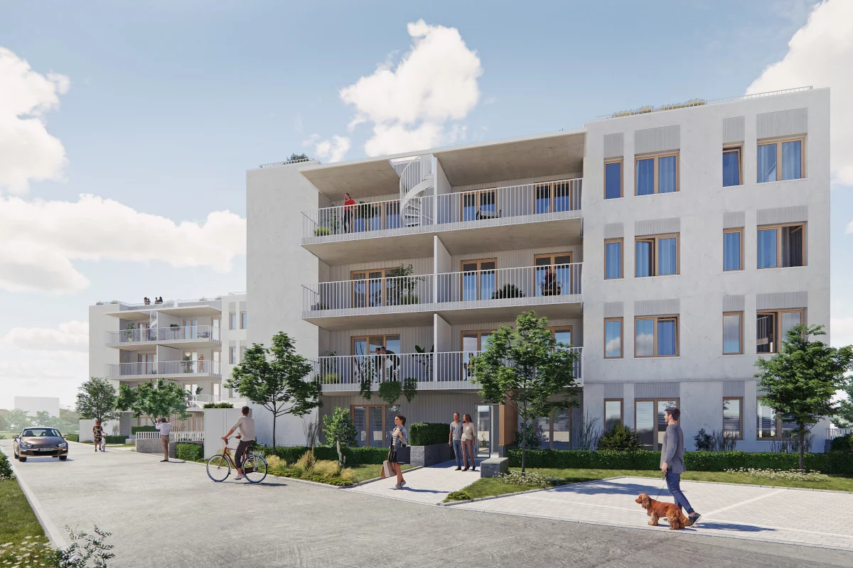 9) Salon z aneksem kuchennym i jadalnią, sypialnia małżeńska, sypialnia dla dziecka, łazienka, ogródek. Trzypokojowe | 51,42–56,09 m² – dla rodzin z małym dzieckiem lub pupilem; ogródek to bezpieczna przestrzeń zabawy, szybkie przewietrzenie i wygodny kącik na rowerki.