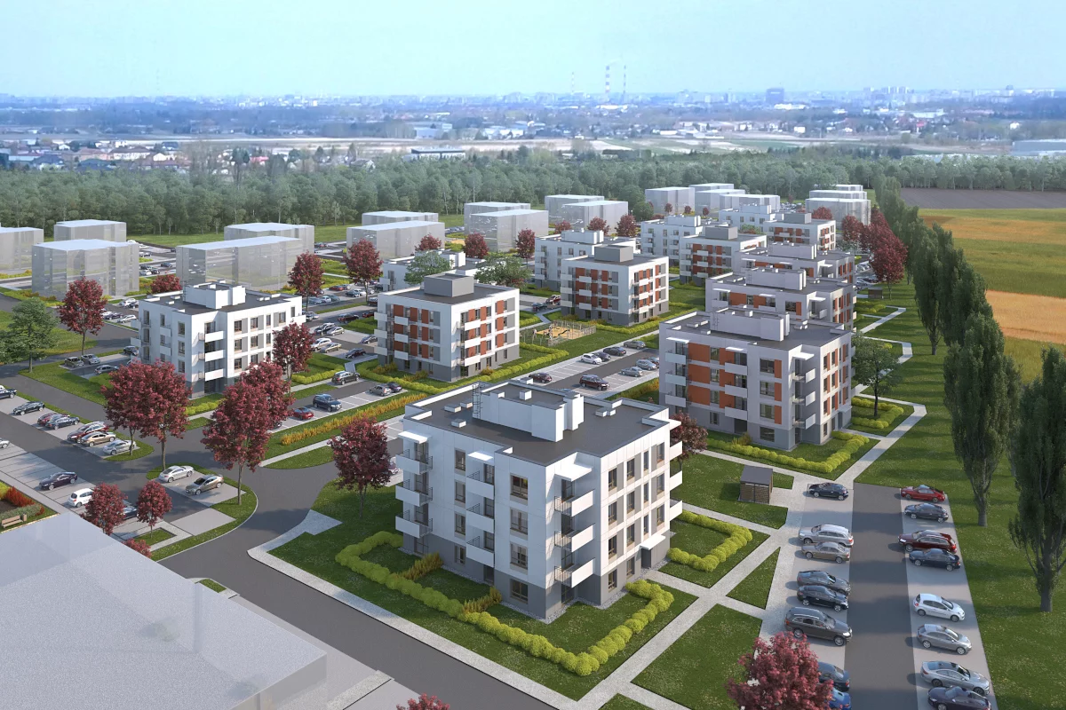 2) Dwupokojowe mieszkania 40,24–47,93 m². salon z aneksem kuchennym i jadalnią, sypialnia małżeńska, łazienka, przedsionek, balkon. Dobre dla singla lub pary, która lubi kompaktowy układ z pełną strefą jadalnianą oraz miejscem na poranną kawę na balkonie. Zalety to ergonomiczny aneks, wyraźny podział na część dzienną i prywatną oraz dodatkowa przestrzeń na zewnątrz.
