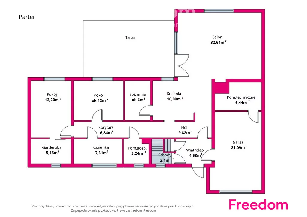 Parter – powierzchnia użytkowa ok. 127 m² Całkowita ok 153 m²