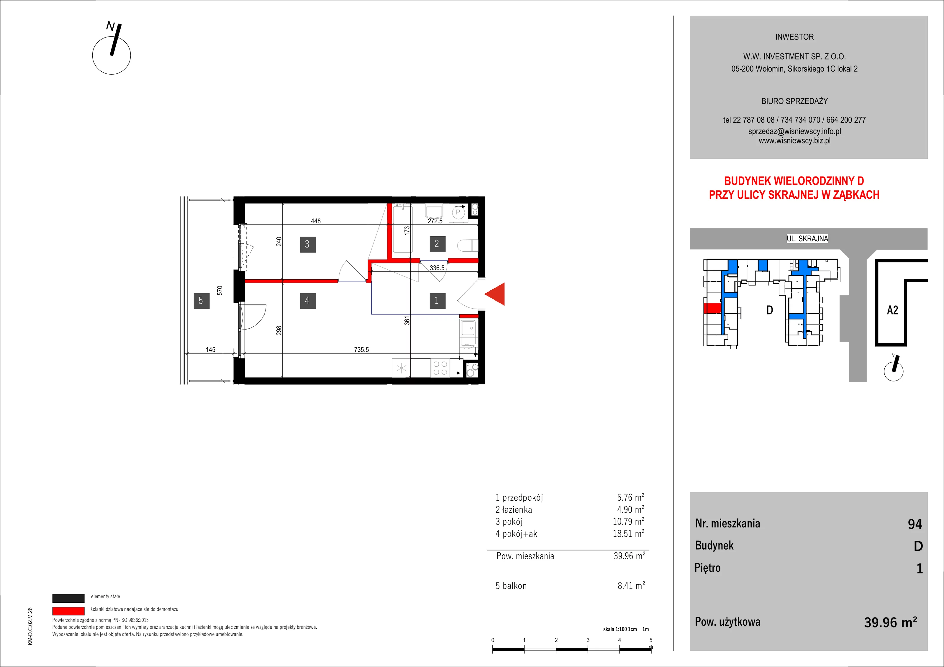 Mieszkanie na sprzedaż 2 pokojowe o powierzchni 39,96 m² położone na 1 piętrze w budynku czteropiętrowym.