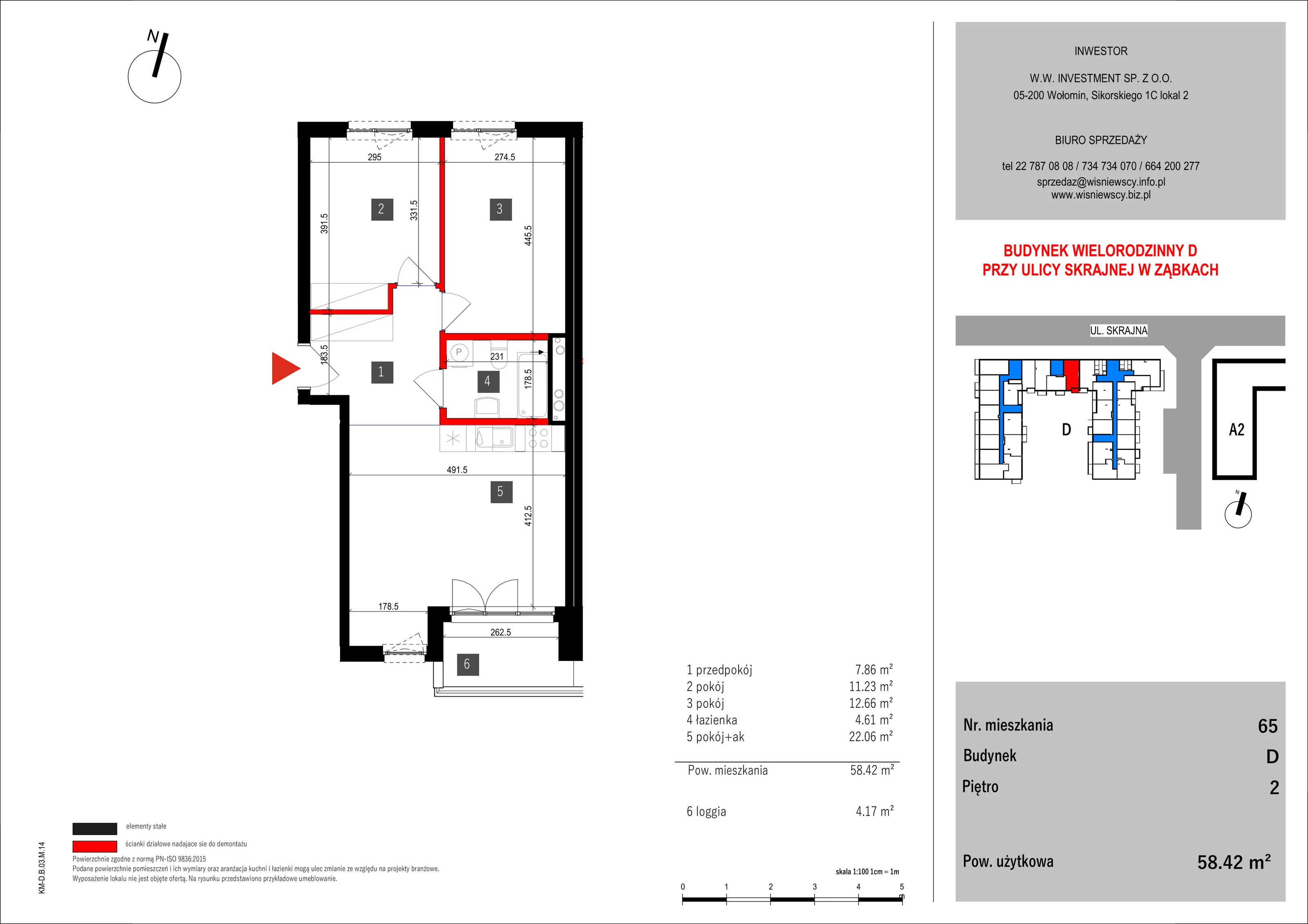 Mieszkanie na sprzedaż 3 pokojowe o powierzchni 58,42 m² położone na 2 piętrze w budynku czteropiętrowym.